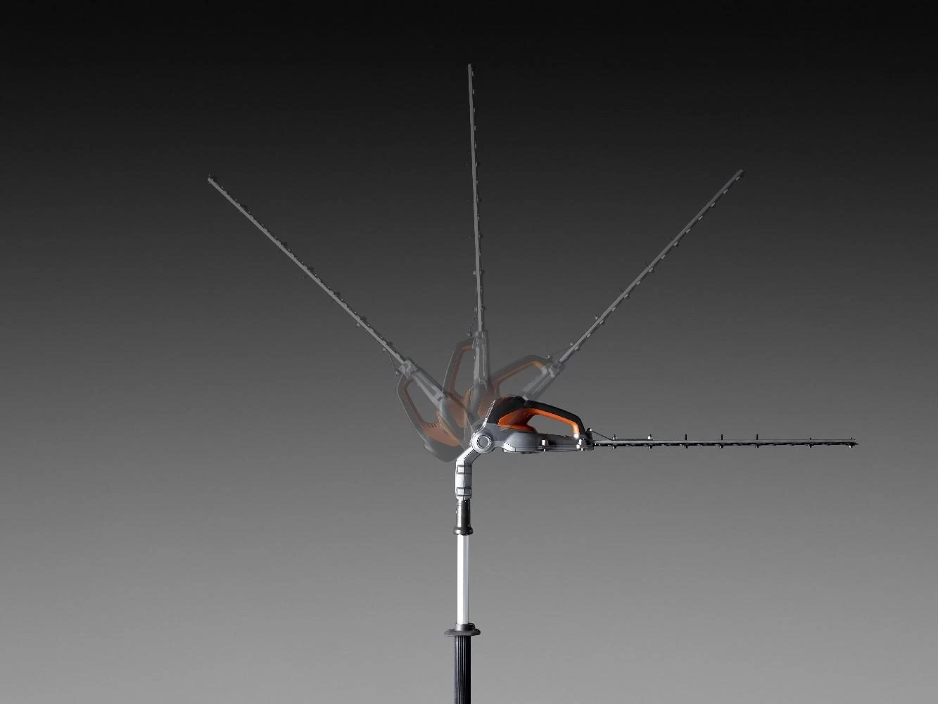 Die Winkeleinstellung ermöglicht ergonomische Arbeitspositionen beim Schneiden von hohen und niedrigen Hecken.