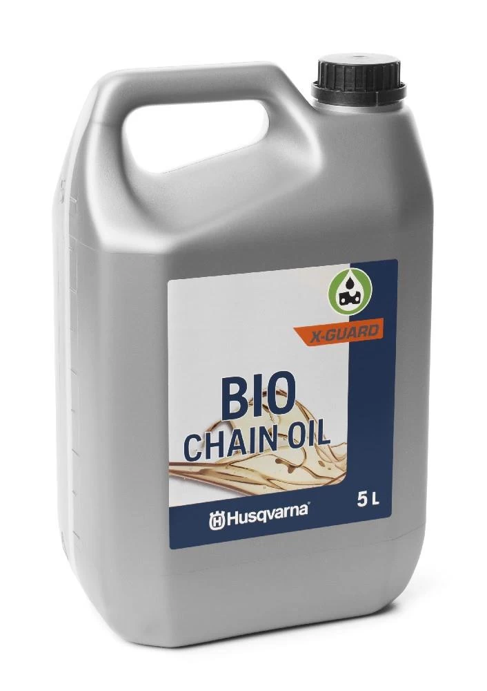 X-GUARD Bio-Kettenöl 5Liter von Husqvarna ist ein harzfreies Premium-Bio-Kettenöl auf Basis nachwachsender Rohstoffe. X-GUARD wird als ganzjähriges Kettenöl mit einer erstklassigen Schmierähigkeit empfohlen. Aufgrund der Schmierung kann der Ölverbrauch reduziert werden, ohne dass die Gefahr eines Verschleißes besteht. X-GUARD hat einen extrem hohen Viskositätsindex, was bedeutet, dass sich die Viskosität weniger mit der Temperatur ändert und das Kettenöl auch unter kalten Bedingungen hervorragend funktioniert. X-GUARD Bio-Kettenöl weist sehr gute Korrosionsschutzeigenschaften auf, die nach Verwendung der Produkte eine sehr gute Lagerstabilität ergeben. Das Produkt ist in Boden und Wasser leicht biologisch abbaubar und für Mensch und Umwelt ungiftig.