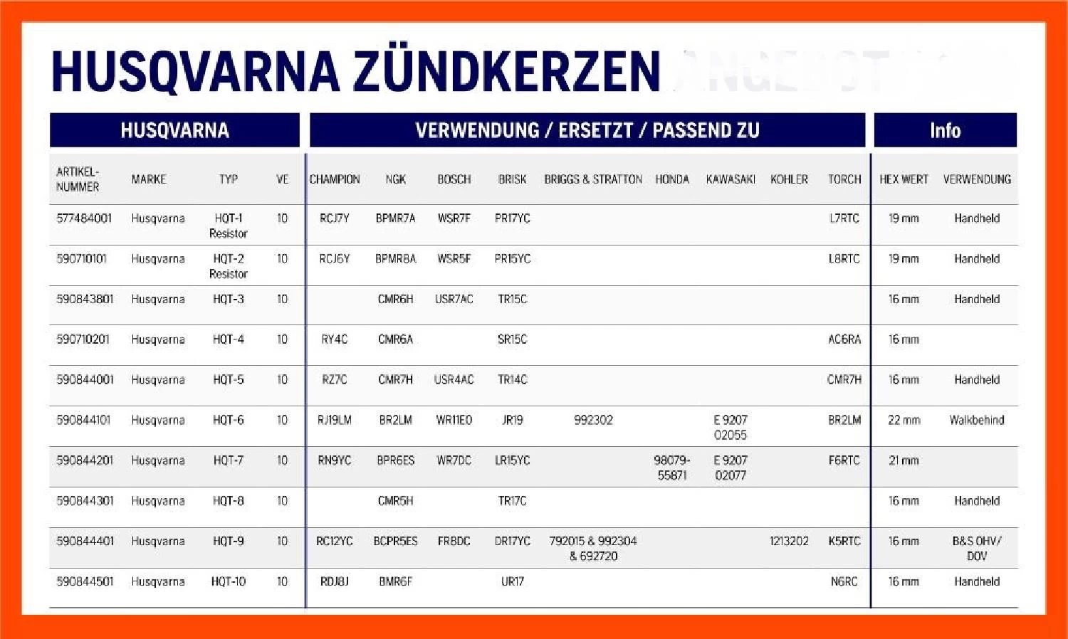 Vergleich: RN9YC BPR6ES WR7DC LR15YC 98079-55871 E9207-02077 F6RTC